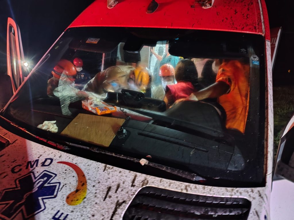 Equipes de resgate foram acionadas e constataram suspeita de fratura na médica, além de dores lombares no motorista e dores nas costas na acompanhante. As enfermeiras não sofreram ferimentos, enquanto a paciente foi monitorada e precisou ter a transferência para a capital agilizada por outra unidade de suporte.