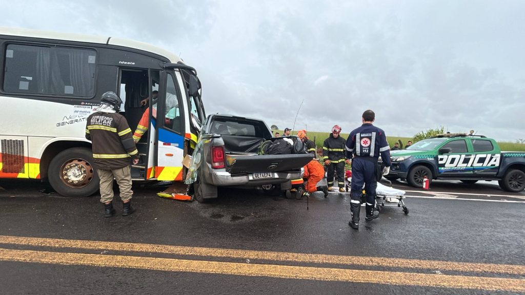 Um grave acidente entre um ônibus e uma caminhonete deixou uma pessoa morta na manhã desta quarta-feira (11) no Anel Viário de Campo Grande, próximo à entrada da MS-040. A colisão ocorreu durante chuva fina na região, o que pode ter contribuído para a perda de controle dos veículos. Com a força do impacto, uma das vítimas não resistiu aos ferimentos e morreu ainda no local.