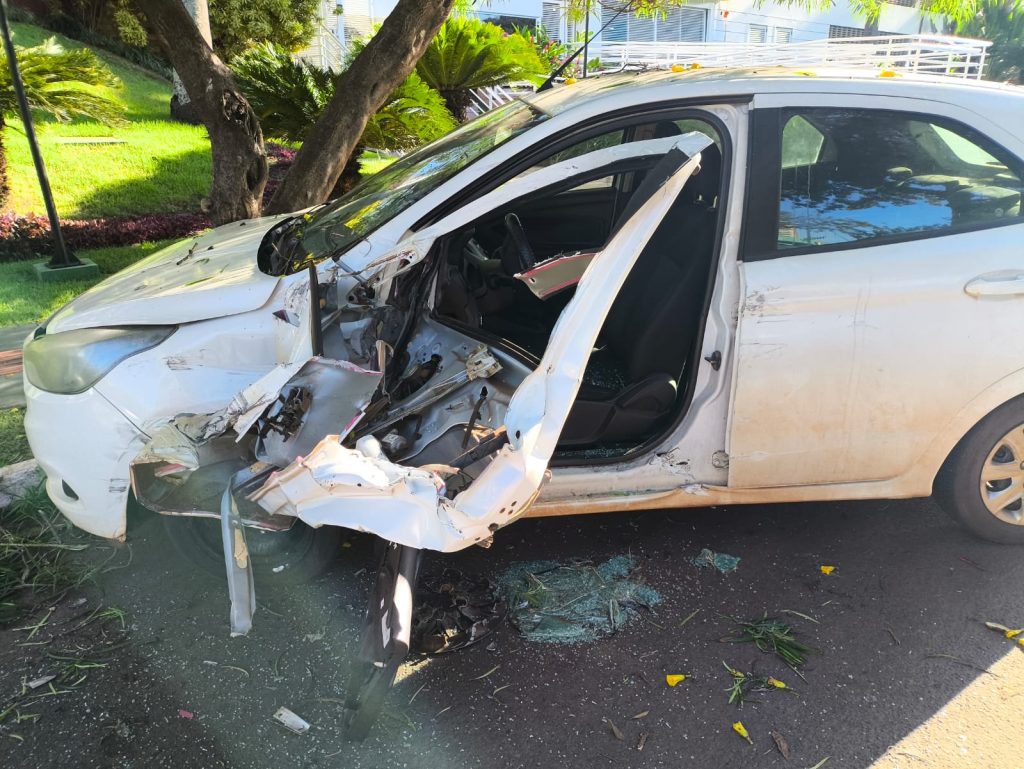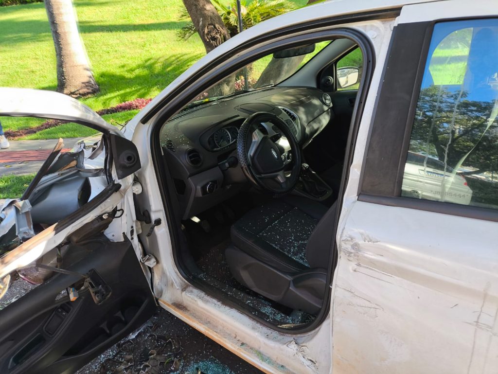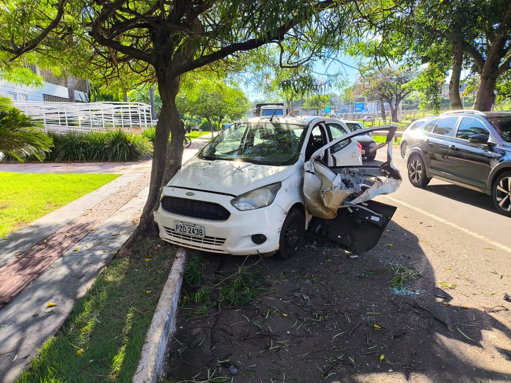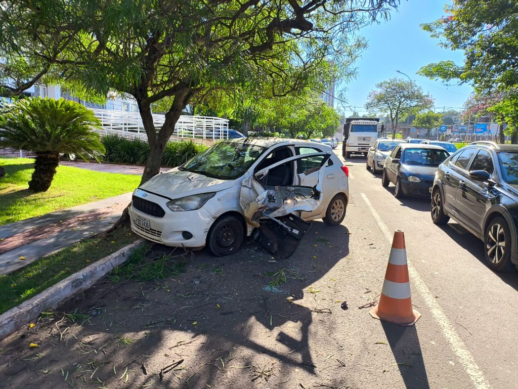 O veículo acabou colidindo com um Ford Ka que estava estacionado na via. Com a força do impacto, o carro foi arremessado contra uma árvore no canteiro lateral, ficando com a frente e a lateral bastante danificadas. Apesar da violência da colisão, ninguém ficou ferido. O caso resultou apenas em prejuízos materiais, e uma perícia deve apurar as causas da falha mecânica no caminhão.
