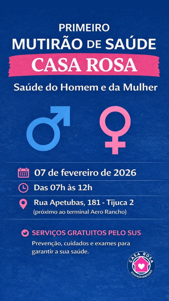 A Casa Rosa inicia o ano de 2026 reforçando seu compromisso com a saúde pública e o cuidado humanizado ao anunciar o primeiro mutirão de saúde do ano, que será realizado no dia 07 de fevereiro, das 7h às 12h, na sede da instituição, em Campo Grande.