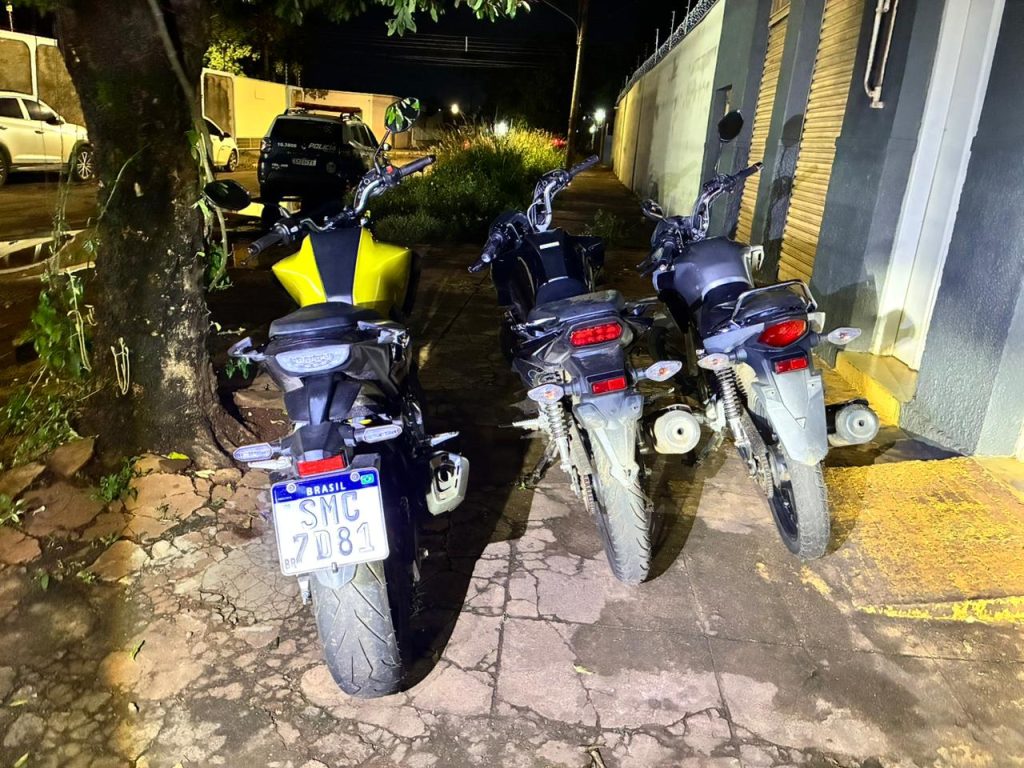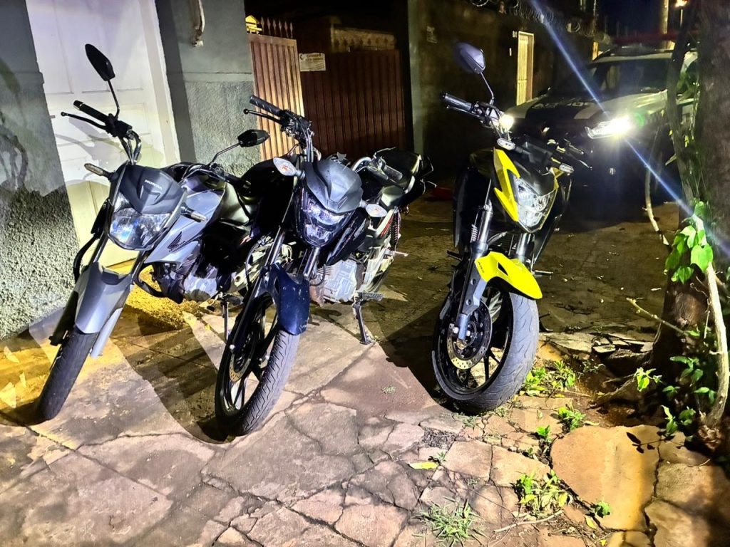 Além de diversos aparelhos celulares sem procedência comprovada; no interior da residência, a equipe confirmou a existência de três motocicletas, duas Honda CG Titan 160 e uma Honda CB300 Twister dourada, todas com registro de furto após checagem no sistema policial, sendo constatado ainda o uso de chaves falsas, conhecidas como “michas”, para a prática dos crimes; outros dois suspeitos, conhecidos pelos apelidos de “Cagado” e Rodrigo, conseguiram fugir e seguem sendo procurados; o casal foi algemado devido ao risco de nova fuga e encaminhado à DEPAC/CEPOL, enquanto as motocicletas recuperadas foram levadas à DEFURV para posterior devolução aos proprietários.