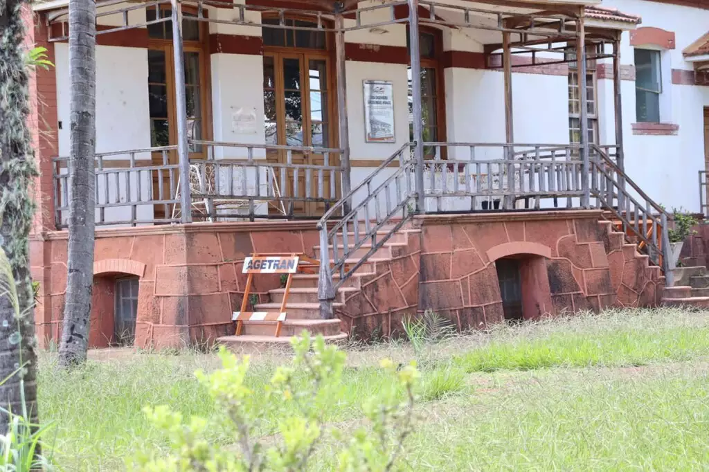 A Casa Engenheiro Carlos Miguel Mônaco, localizada na Avenida Calógeras, em Campo Grande, apresenta visível estado de deterioração, com estruturas comprometidas e sinais de abandono ao longo dos anos. O portão danificado, rachaduras nas paredes, pintura desgastada e uma fonte seca evidenciam a falta de manutenção no imóvel histórico. Placas e fitas de isolamento indicam risco, enquanto o acesso às escadas foi proibido por segurança. Construída em 1935 e ligada à memória da Esplanada Ferroviária, a edificação já foi palco de eventos oficiais e sede de espaços institucionais.