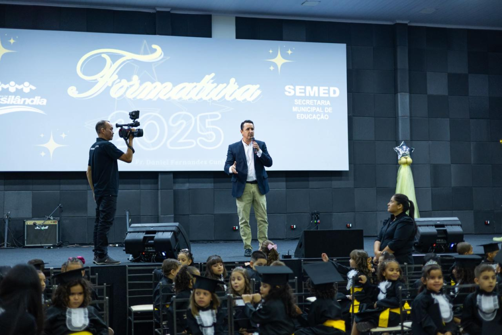 Continuando as comemorações, a Secretaria Municipal de Educação (SEMED), em parceria com os CMEIs Prefeito João Albino Cardoso e Ricardo Barbosa Sandoval, realizou na noite desta quarta-feira a formatura da Turma 2025, intitulada “Estrelas em Cena”.