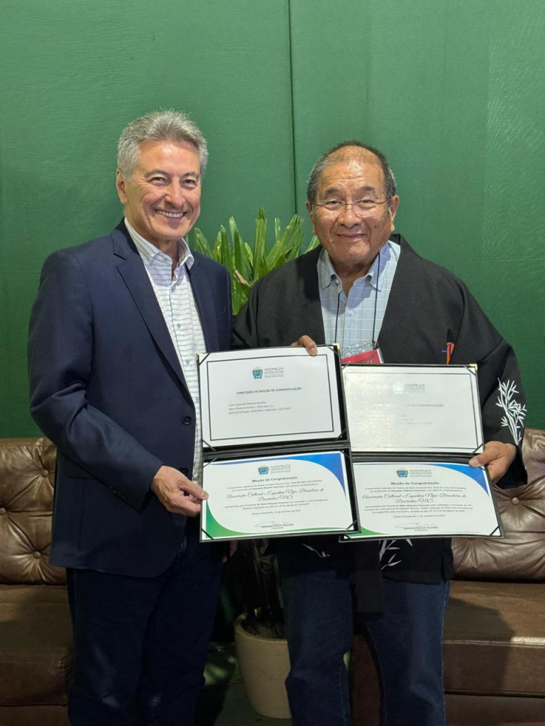 Durante o evento, Hashioka também entregou duas Moções de Congratulação à Associação Cultural e Esportiva Nipo-Brasileira de Dourados: uma em reconhecimento à realização do 10º Campeonato de Gateball – Memuro e outra pela conquista do título brasileiro de beisebol, reforçando o incentivo às práticas esportivas e ao fortalecimento das tradições japonesas na região.