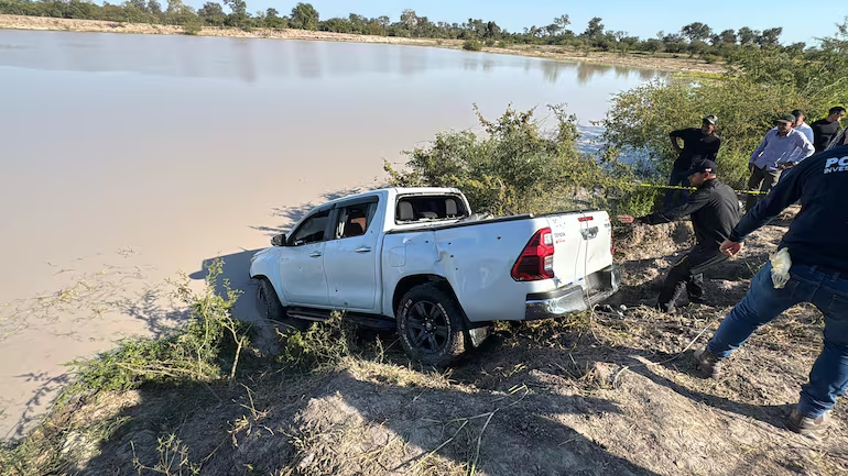 Foto: A caminhonete destruída, que havia caído na água, foi resgatada 24 horas após o ataque/Divulgação