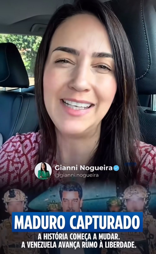 A vice-prefeita de Dourados e pré-candidata ao Senado, Gianni Nogueira, publicou um vídeo em suas redes sociais comentando as informações divulgadas pela imprensa internacional sobre a possível captura de Nicolás Maduro, em operação atribuída aos Estados Unidos.
