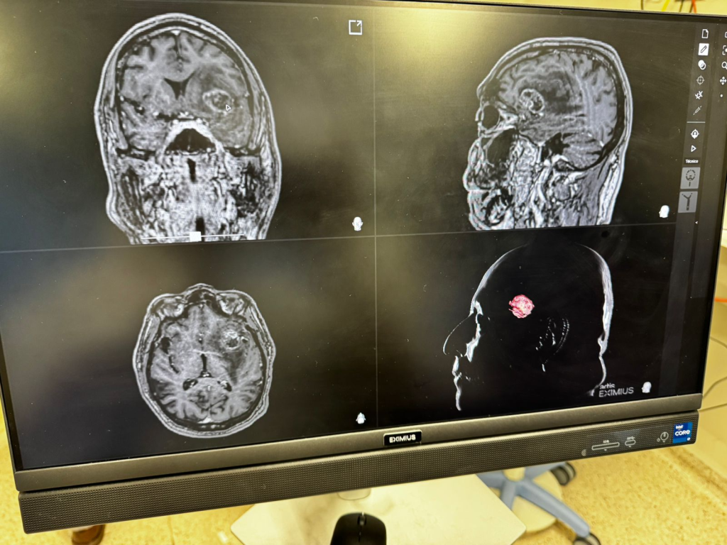 Essa precisão é reforçada pelo uso da neuronevegação, uma tecnologia de ponta disponível na Cassems que funciona como um GPS intracraniano. Através de uma ponteira laser, o médico consegue localizar a lesão com exatidão milimétrica na ressonância em tempo real. “Isso diminui muito o quanto a gente manipula o cérebro, agindo apenas na área estritamente necessária”, pontua Zanin.