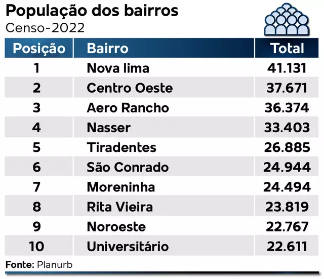 O Título de Bairro Mais Populoso não é mais do Aero Rancho e sim do Nova Lima em Campo Grande. A Região do Nova Lima está com mais de 41,1 mil pessoas, segundo cálculo inicial feito pelos técnicos da PLANURB. Os números levam em consideração os dados censitários, divulgados recentemente pelo IBGE.