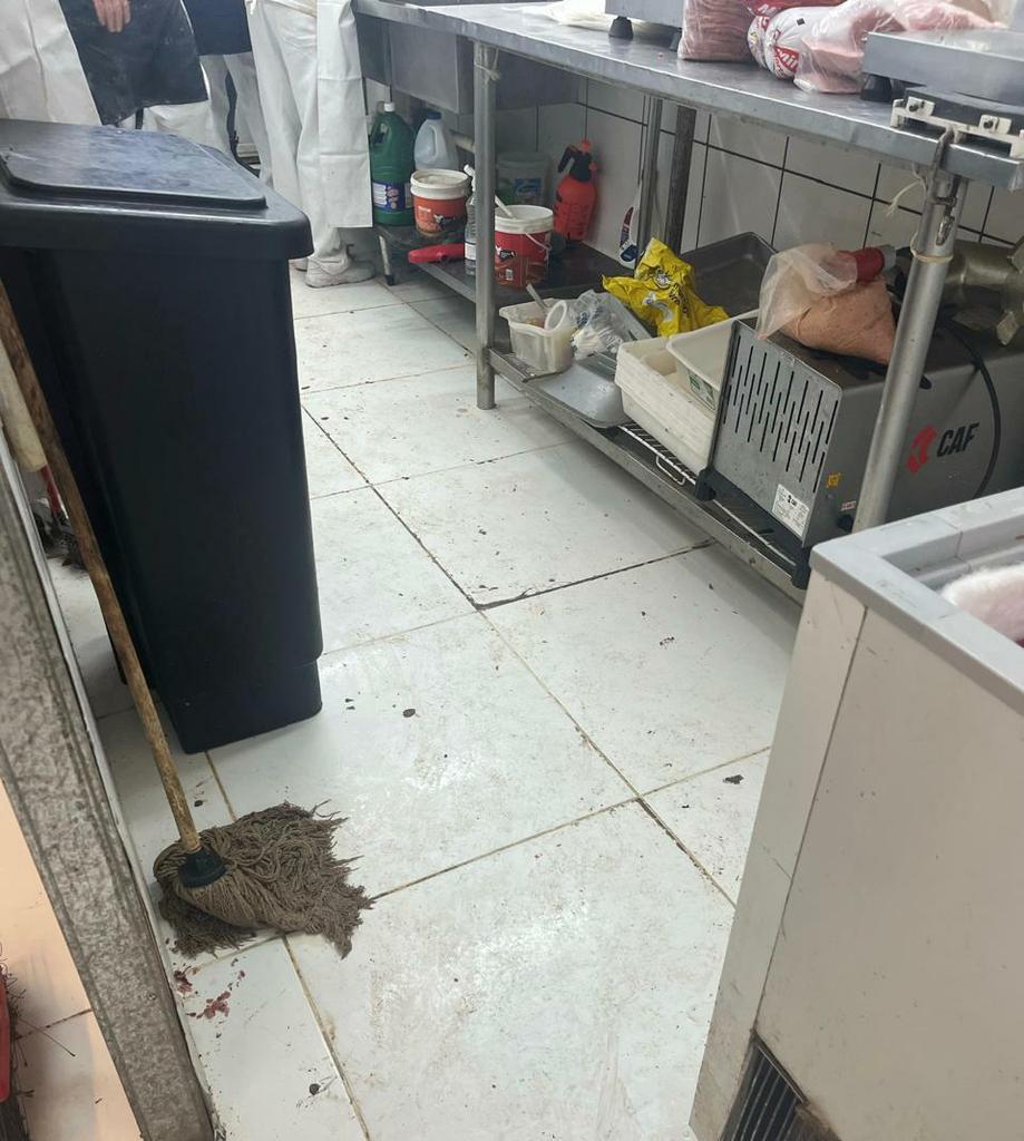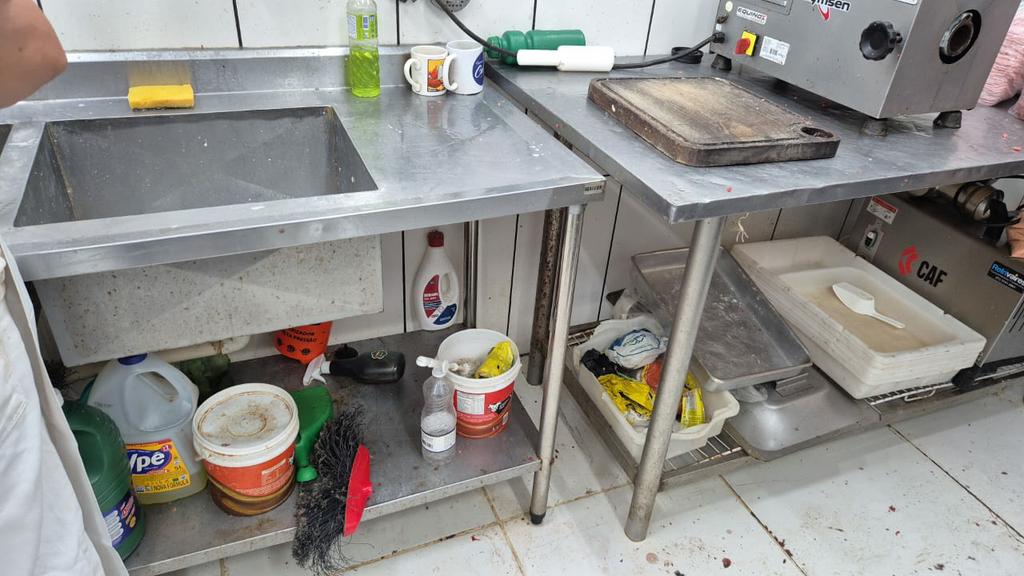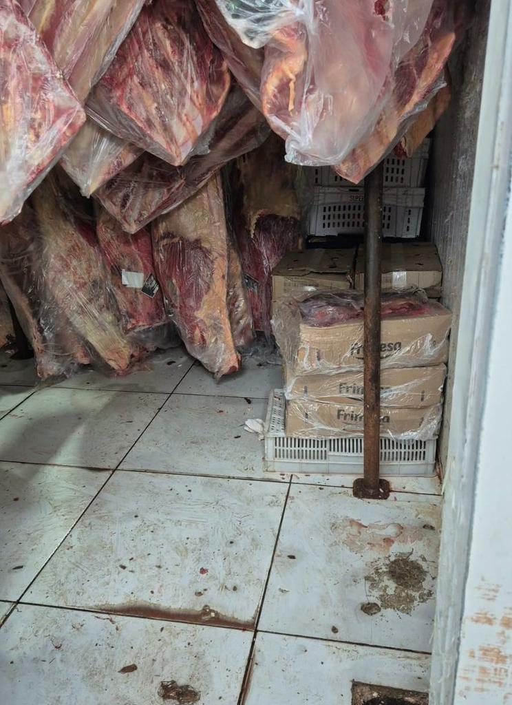 Os problemas incluíam produtos vencidos, armazenagem inadequada, ausência de procedência e falhas na rotulagem. Um dos locais apresentava esgoto dentro da câmara fria da carne, com odor intenso.