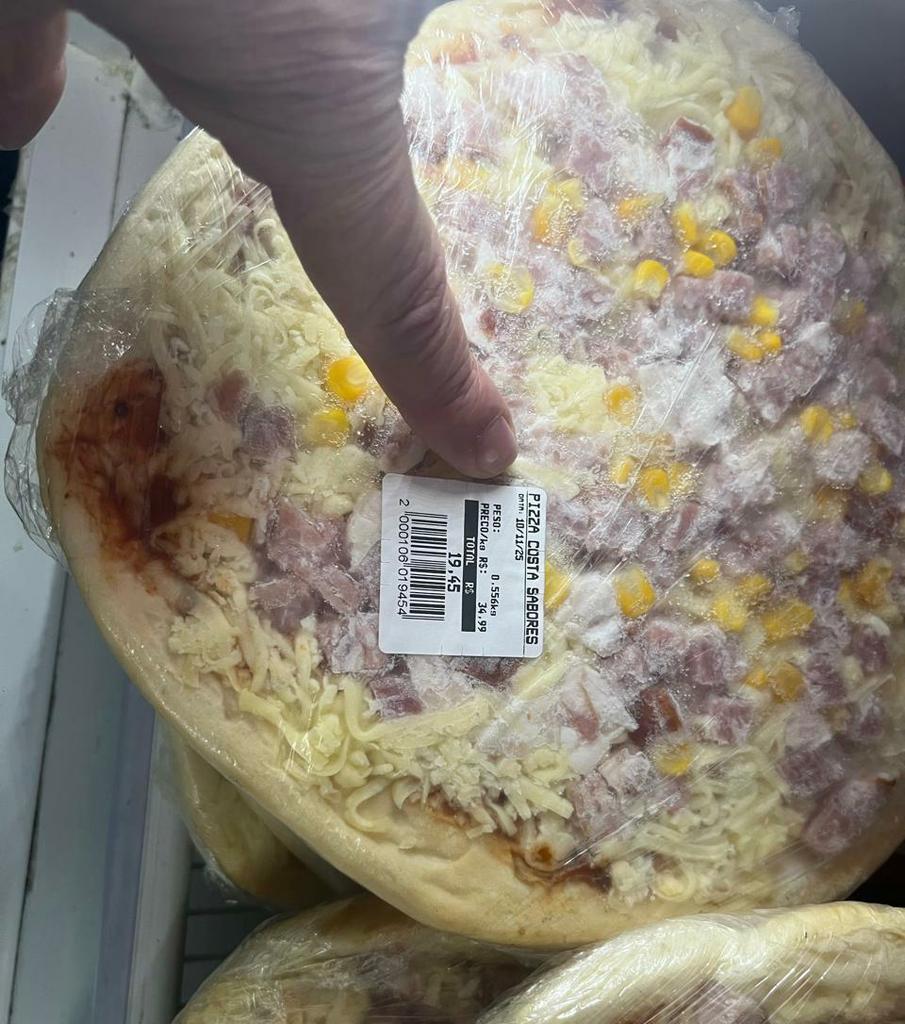 Entre os produtos apreendidos estavam carnes vencidas, pizzas, itens de panificação, álcool proibido e sacos de carvão sem procedência. Alguns alimentos estavam em condições tão ruins que não puderam ser aproveitados nem para alimentação animal.