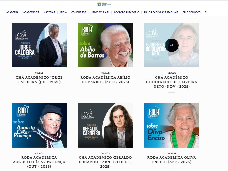 Conteúdos podem ser assistidos gratuitamente no portal da Academia Sul-Mato-Grossense de Letras