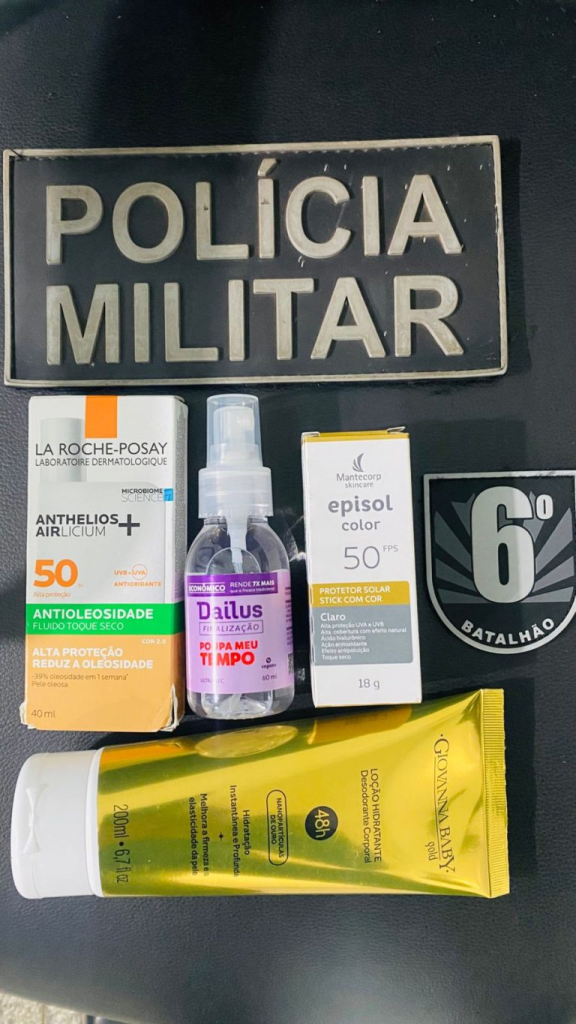 Os produtos, incluindo itens de higiene e cosméticos, foram recuperados e encaminhados à Delegacia de Polícia Civil para registro e providências legais. Os autores foram conduzidos à delegacia, garantindo que o caso fique sob análise da autoridade competente. A rápida atuação reforça o compromisso da Polícia Militar com a proteção do comércio e a segurança pública. A corporação orienta acionar o 190 em flagrantes ou emergências, e o Disque Denúncia 181 para denúncias anônimas. A PM segue atuando continuamente no combate a crimes patrimoniais, garantindo a ordem e a segurança da população local.