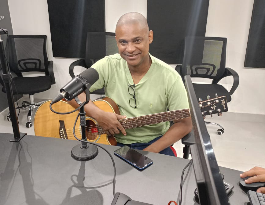 Encerrando a noite, o cantor Ricardo Anjos deu o tom musical do programa, embalando o estúdio com sua voz marcante e histórias de superação.