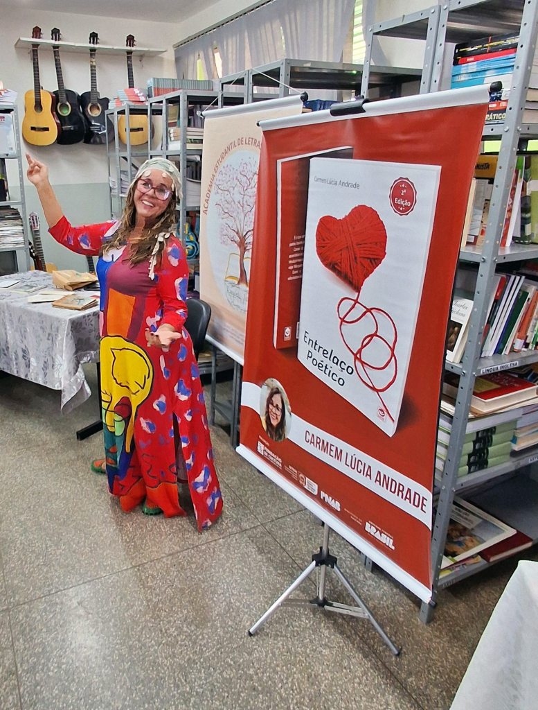 A atividade, apoiada pela Fundação de Cultura de MS via PNAB, promoveu diálogo direto com jovens sobre leitura, escrita e publicação de livros. Carmem respondeu dúvidas, leu textos e incentivou novos talentos da literatura.