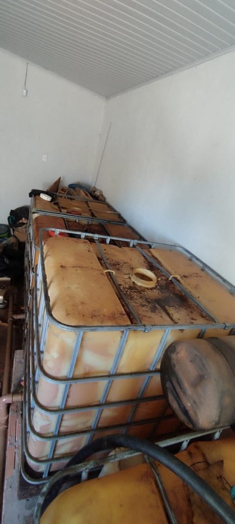 Nesta terça-feira, 10 de fevereiro, a Polícia Militar Ambiental de Rochedo, em apoio ao GAECO, realizou operação de fiscalização após denúncia de armazenamento irregular de combustível. Durante a ação, foram localizados quatro contêineres contendo óleo diesel em um imóvel da cidade, atividade desenvolvida sem o licenciamento ambiental exigido para empreendimentos potencialmente poluidores.