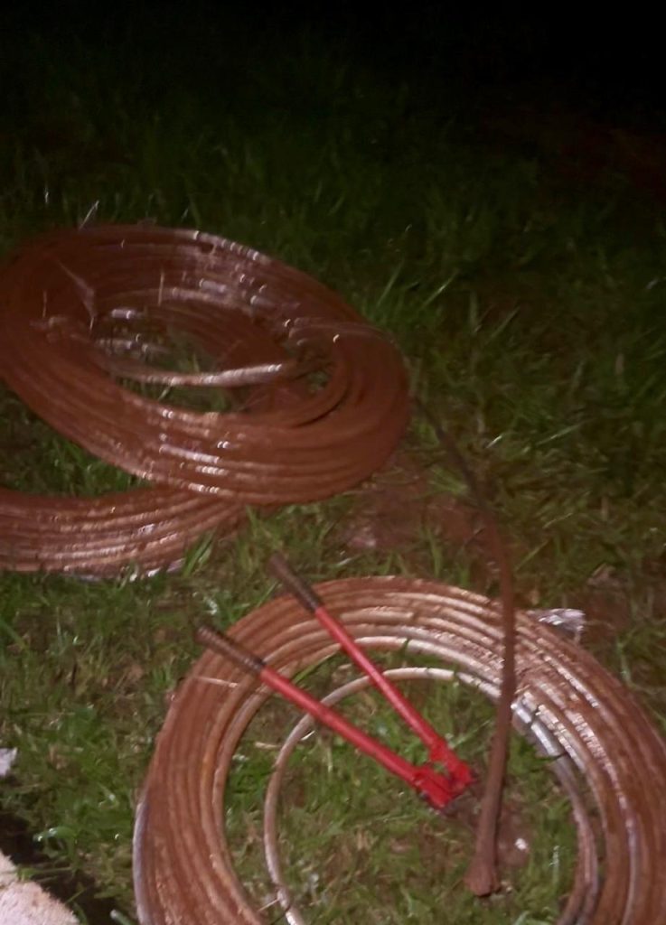 Dois outros criminosos foram presos transportando os cabos em um reboque, junto com uma esmerilhadeira e uma balança de precisão.