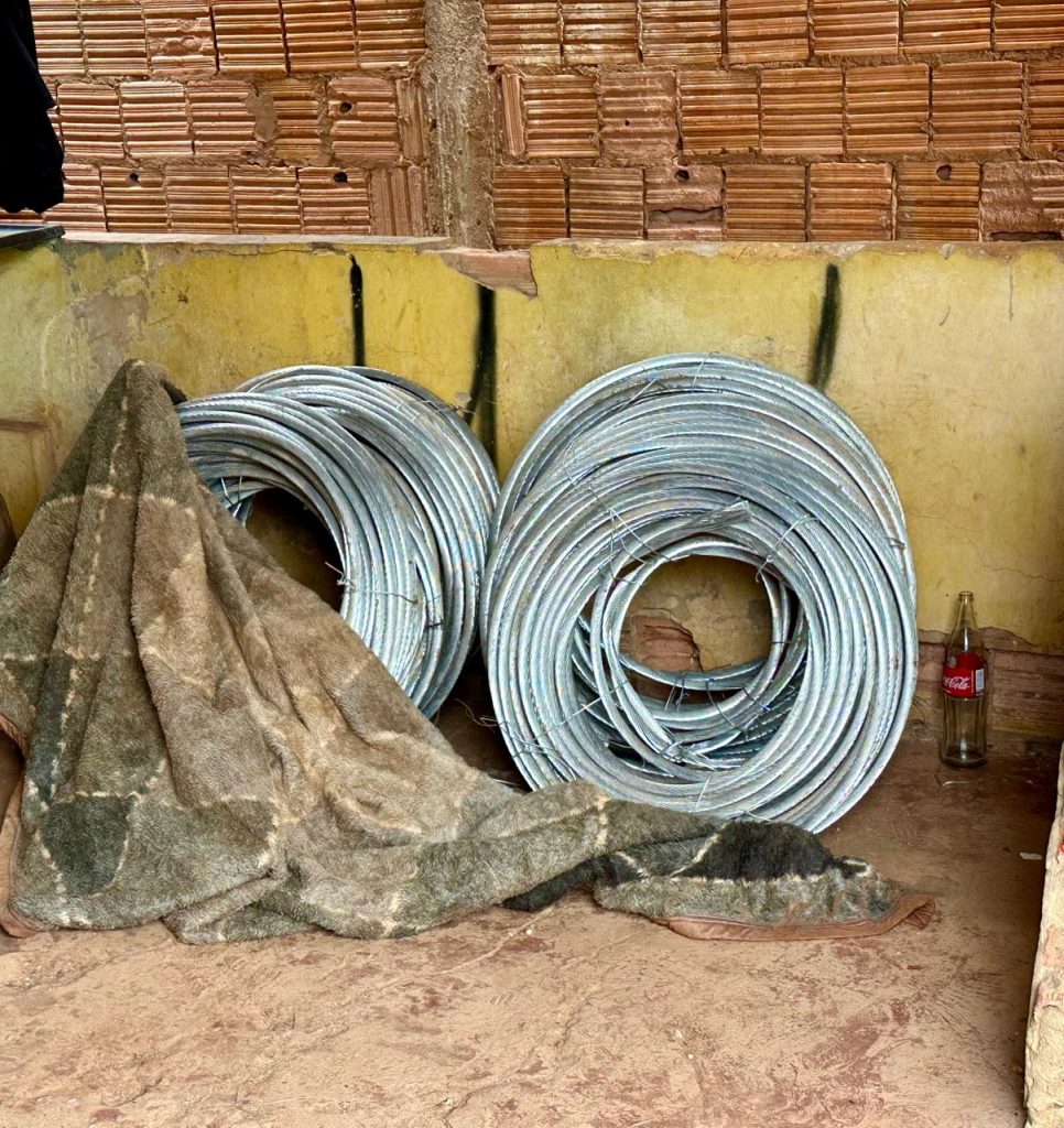 Mais de 1,5 tonelada de cabos foram apreendidas e toda a organização criminosa foi identificada. A ação ocorreu após denúncias de movimentação suspeita na região, com dois veículos abandonados em um local ermo.