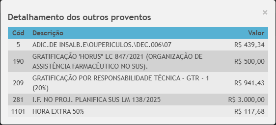 Valores adicionais pagos à nora do prefeito no mês de janeiro. Foto: Reprodução/Portal da Transparência