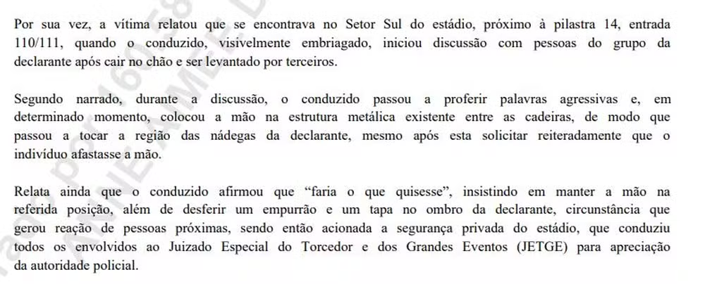 Um homem de 71 anos foi preso em flagrante no dia 8 de março, Dia Internacional da Mulher, suspeito de importunar sexualmente uma torcedora do Fluminense durante o clássico contra o Flamengo, no Maracanã. O episódio ocorreu no Setor Sul, destinado à torcida tricolor, e envolveu contato físico inadequado da vítima pelo suspeito, que a empurrou quando repreendido.
