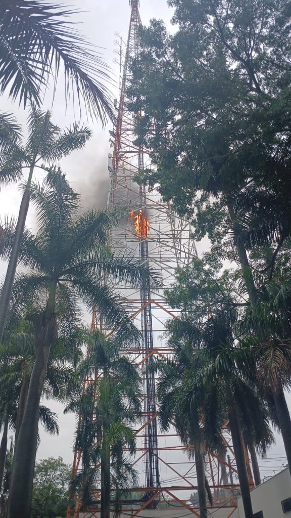 A Rede MS de Rádio e Televisão informou que um incêndio atingiu, por volta das 14h de ontem (26), a torre de transmissão da emissora em Campo Grande. Equipes do Corpo de Bombeiros foram acionadas rapidamente e conseguiram controlar as chamas.