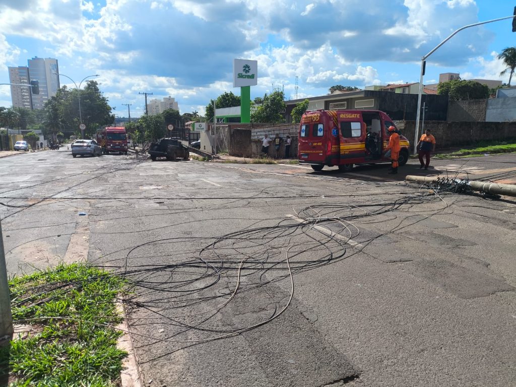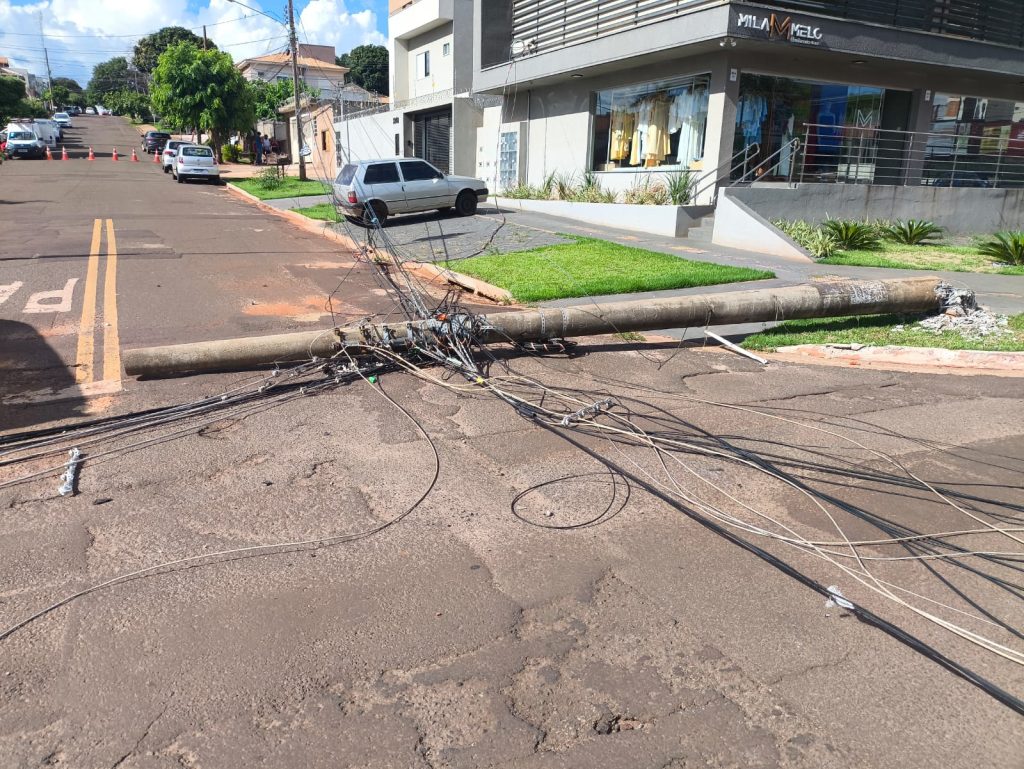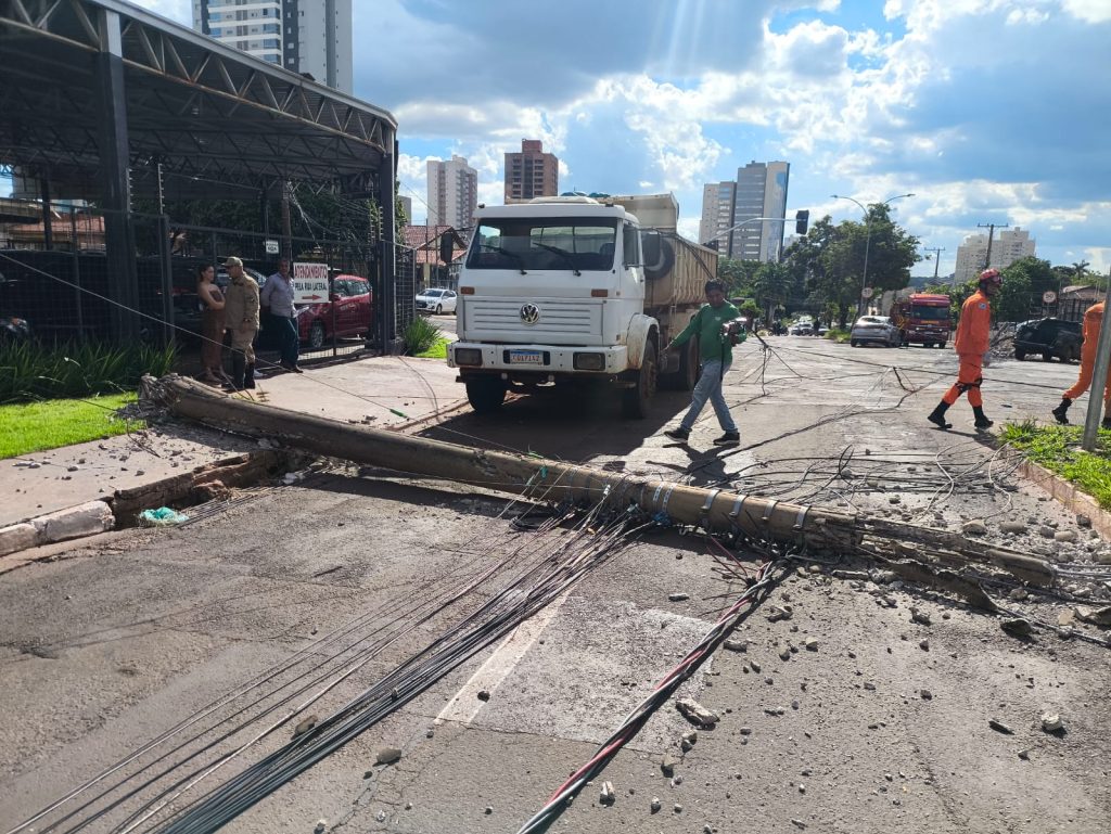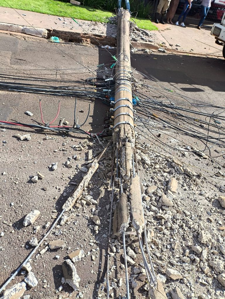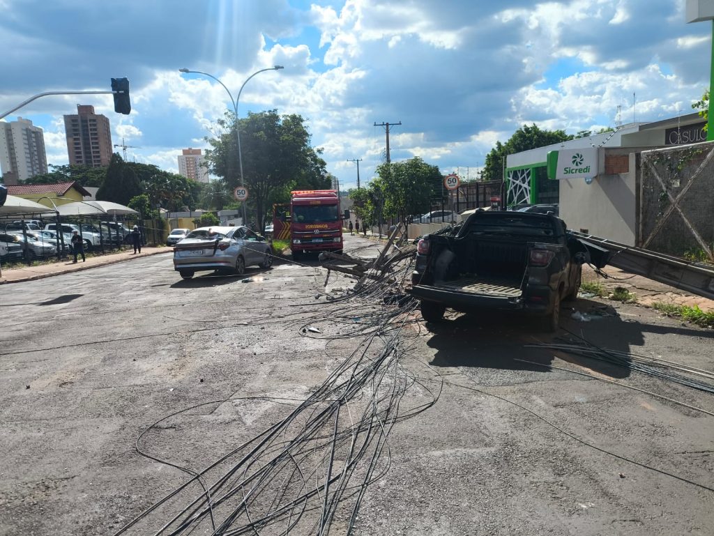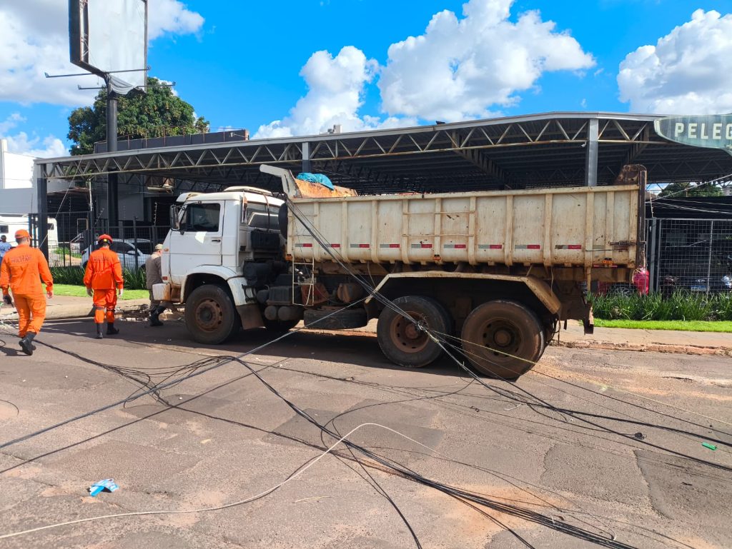 Segundo testemunhas, o veículo circulava com a caçamba levantada e acabou puxando diversos cabos de energia elétrica. Com o impacto, dois postes foram arrastados, e um deles caiu sobre uma Fiat Strada.
