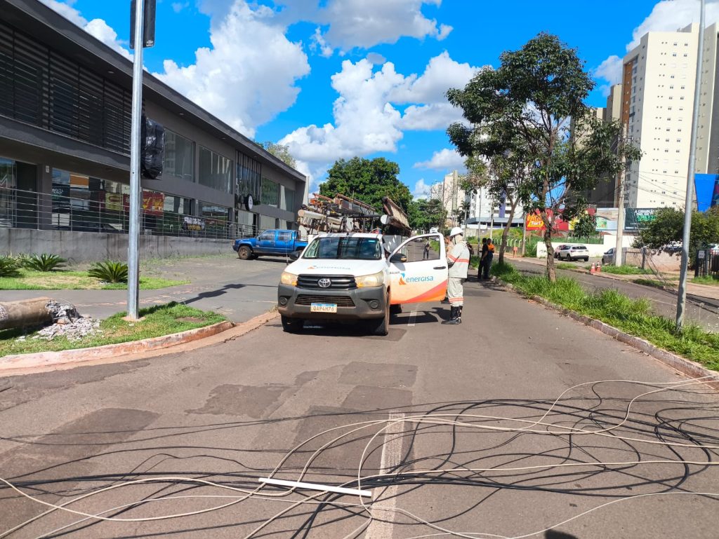 Um caminhão causou destruição na tarde desta sexta-feira (19) na Avenida Rachid Neder, no bairro São Francisco, em Campo Grande.